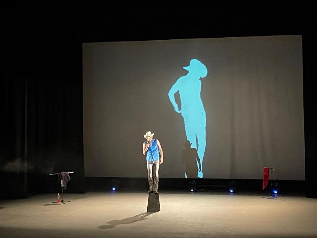 Hay divertimento, hay parodia, la mofa interesante, el decir, bajita la mano, lo que no se compra, aunque el recurso en escena sea el venderse. Una hora de actuación: la voz, el cuerpo, la música, los silencios, la iluminación, y el programa que encuentra cobijo también en las butacas como escenario.